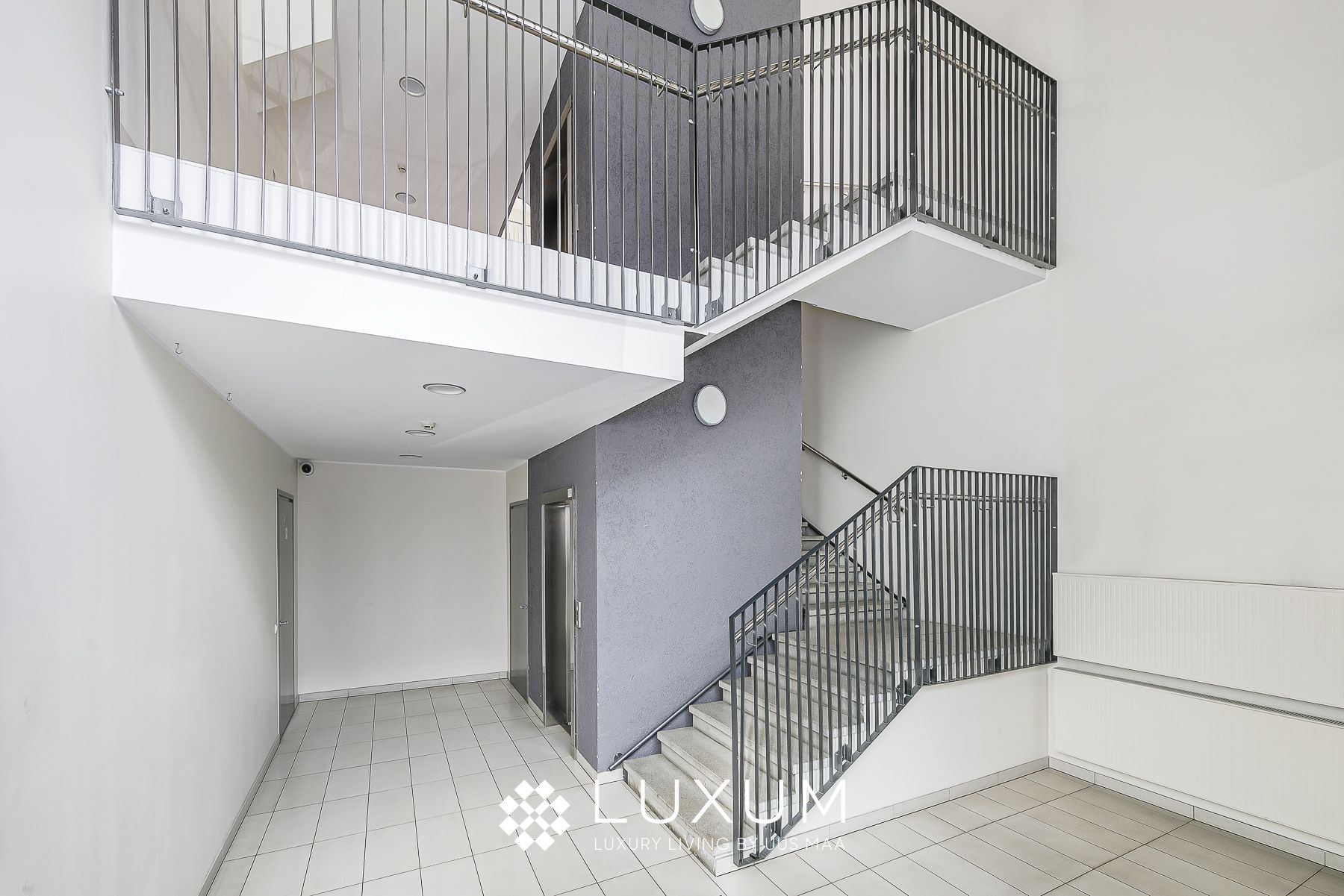 The price includes two parking spaces in an underground garage and a storage room. There are also parking spaces available for guests in front of the building.