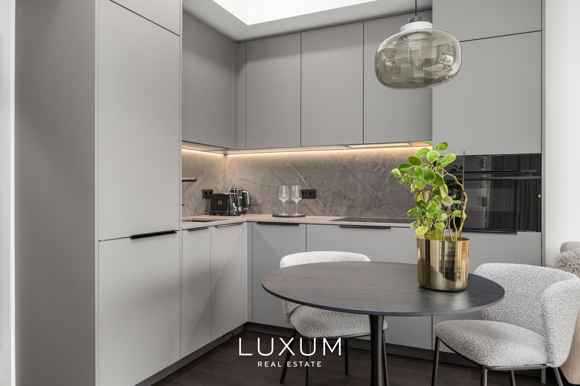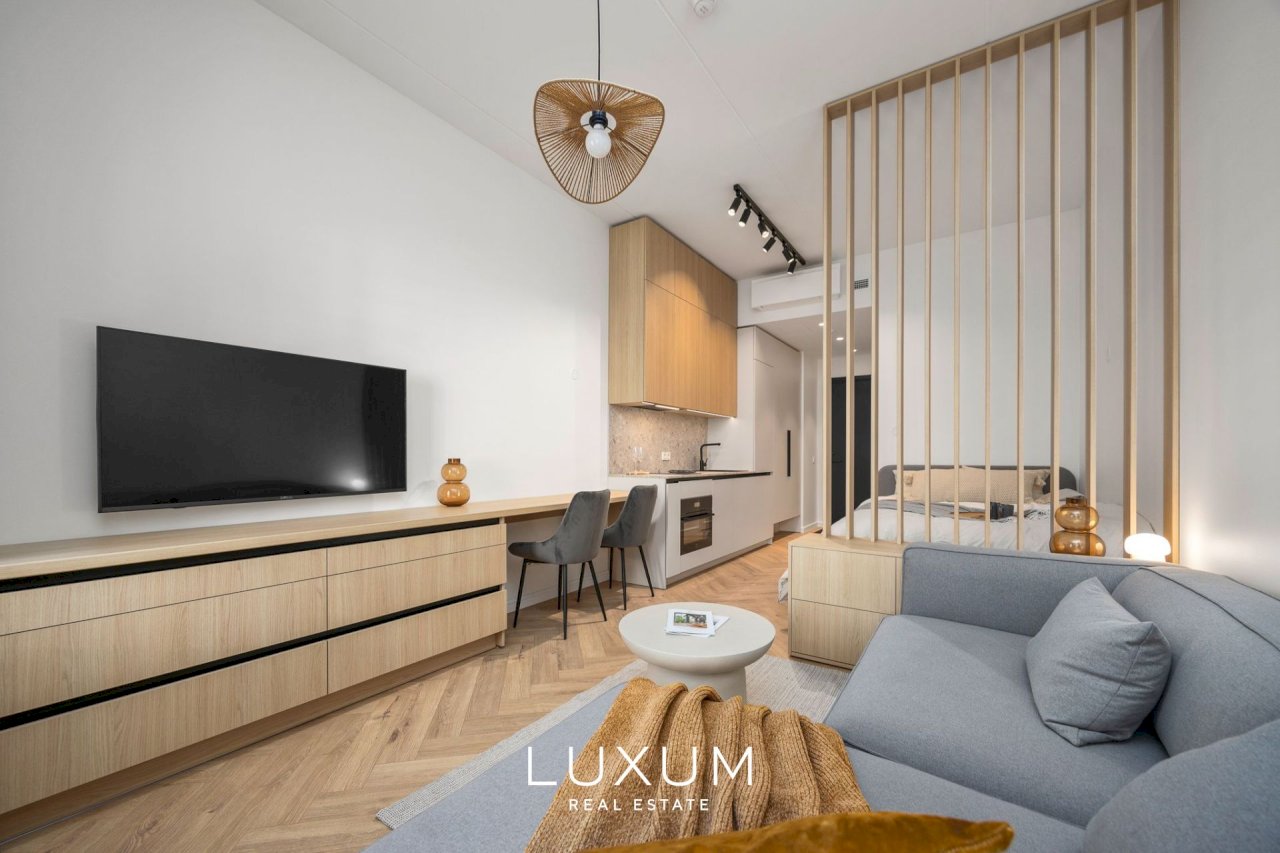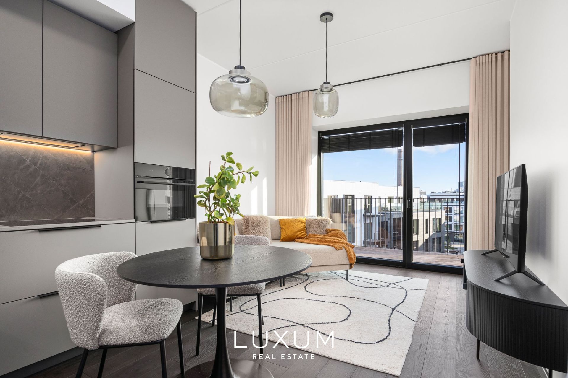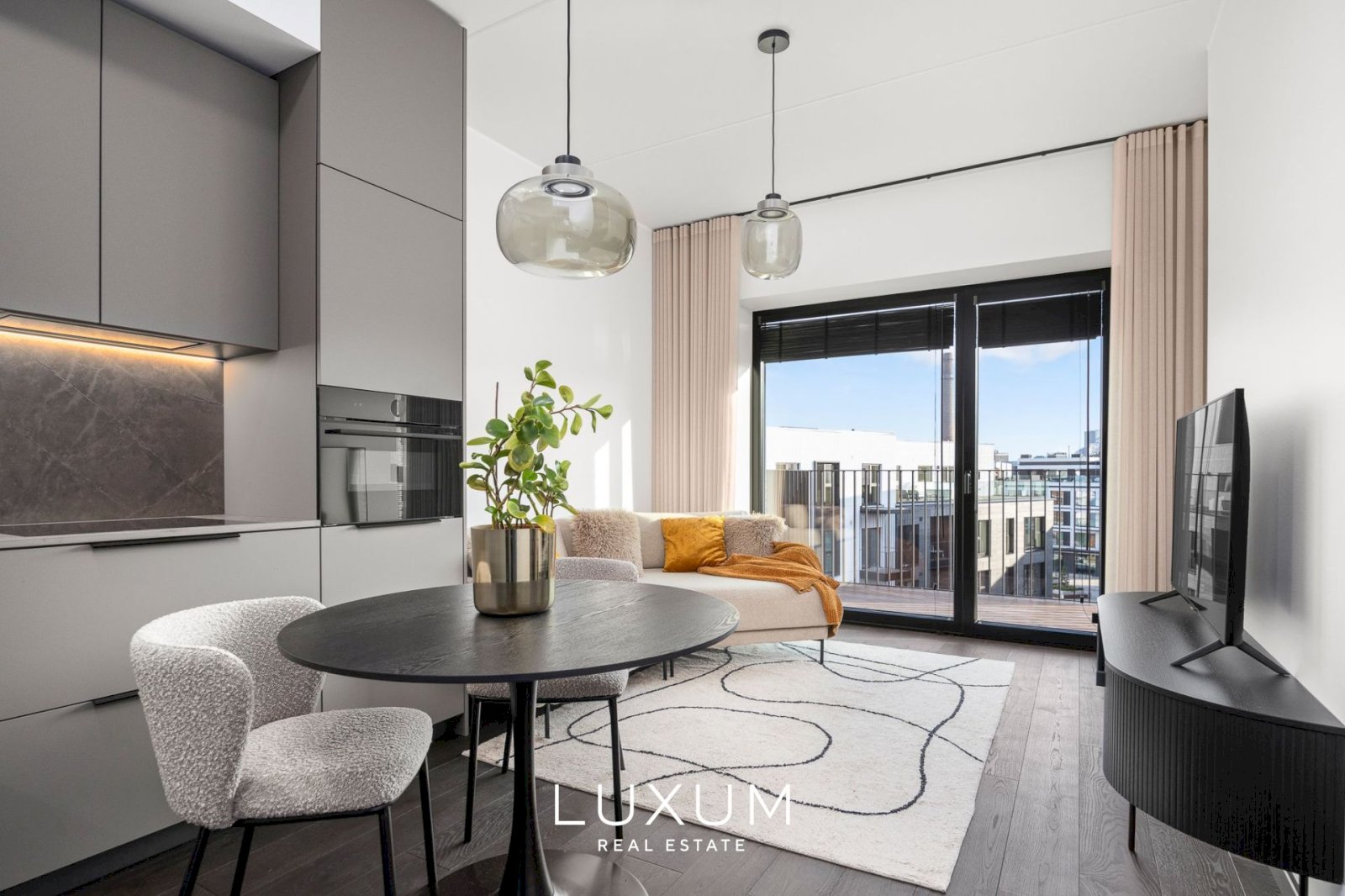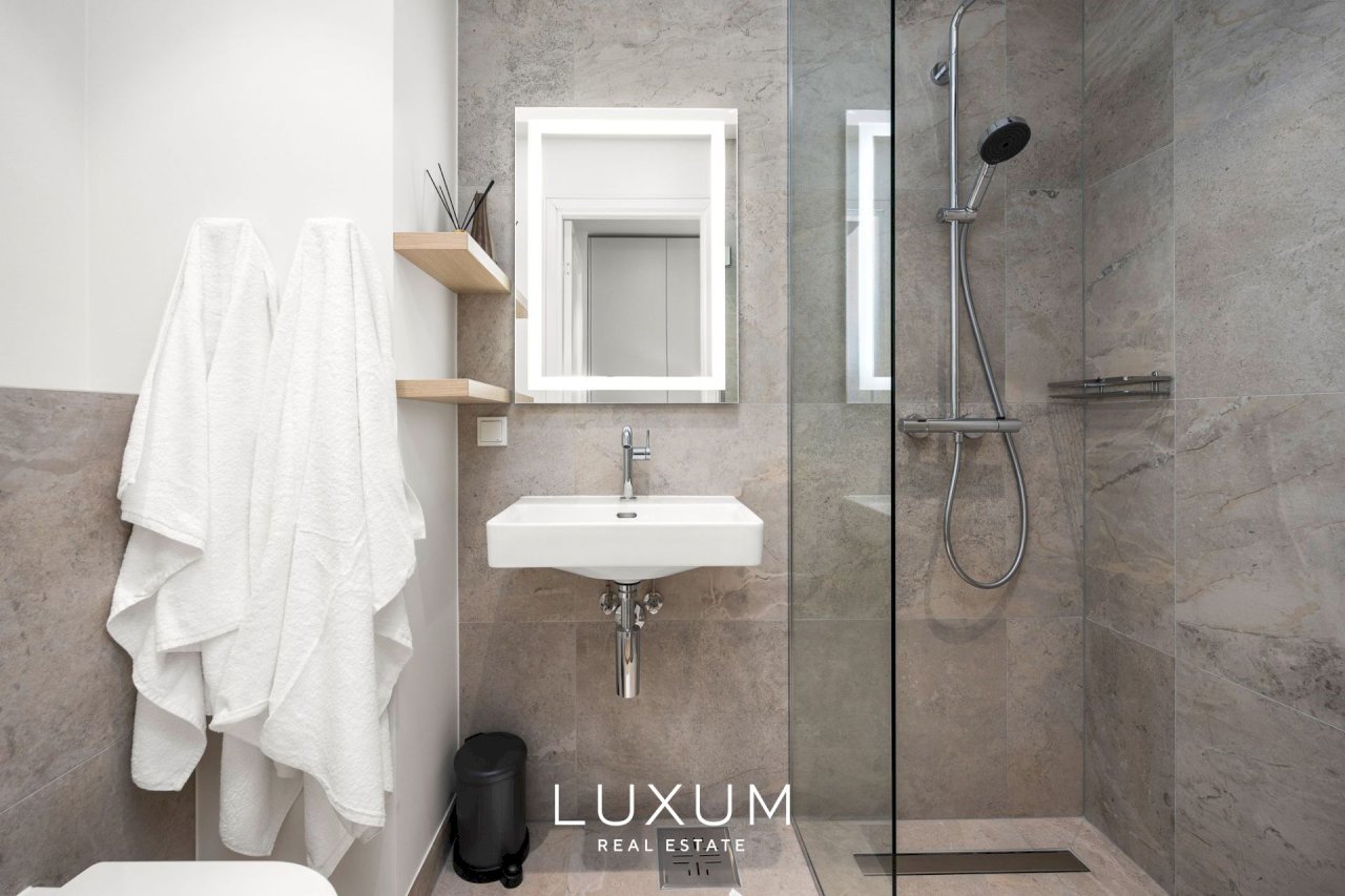 Everything here is fresh, immaculate and high-quality. The apartment is fully furnished in a timeless modern style and equipped for everyday comfort: custom-made Schmidt kitchen and wardrobes, built-in appliances, lighting, and window coverings. All furniture shown in the photos is included – just move in, effortlessly.