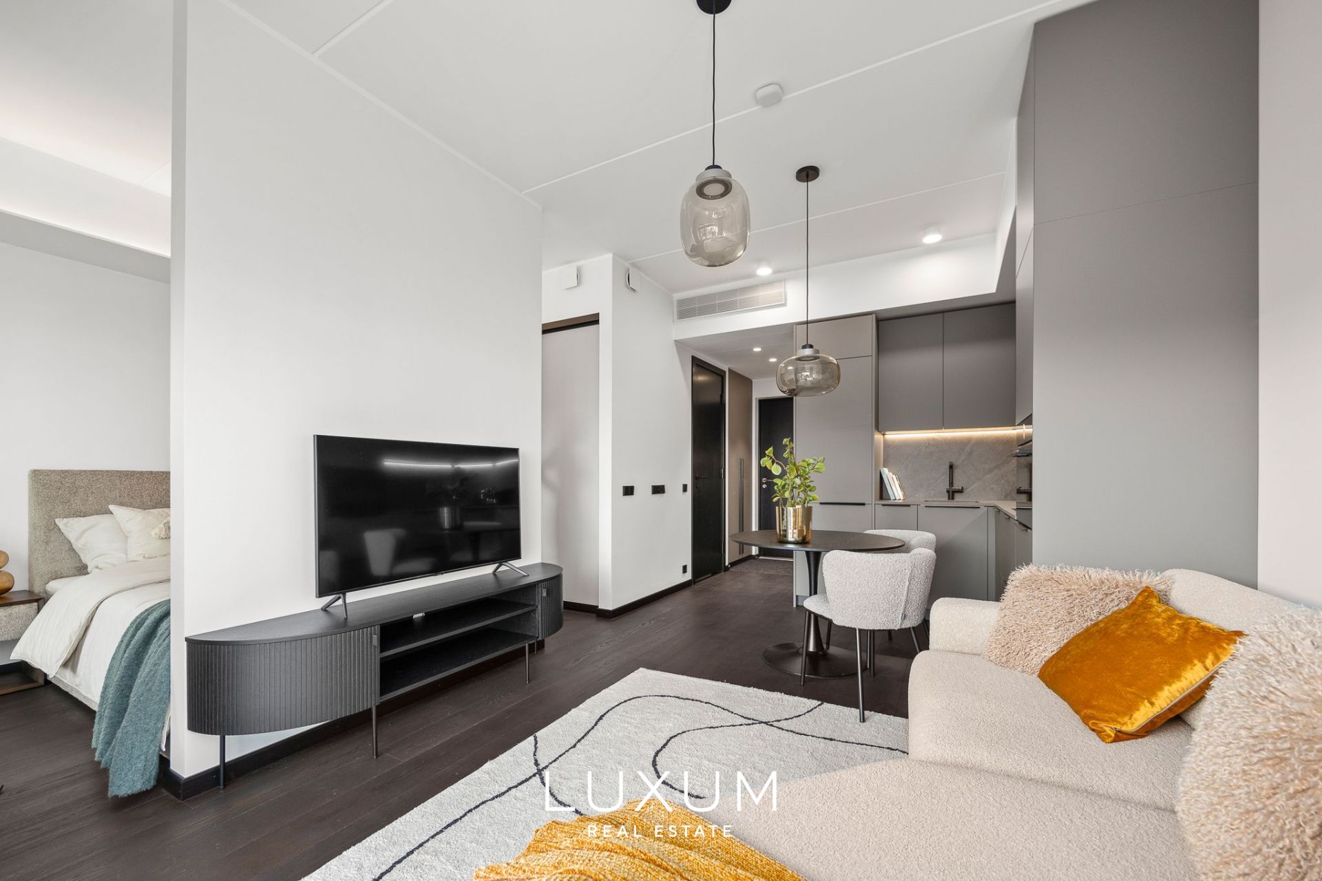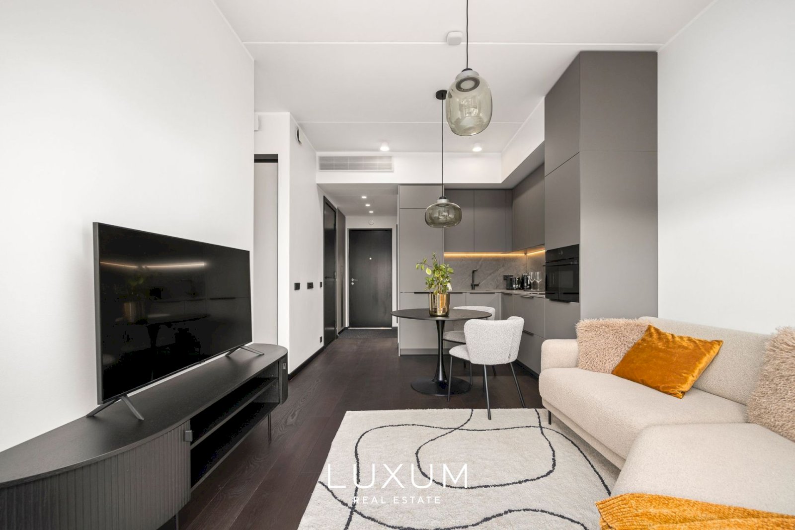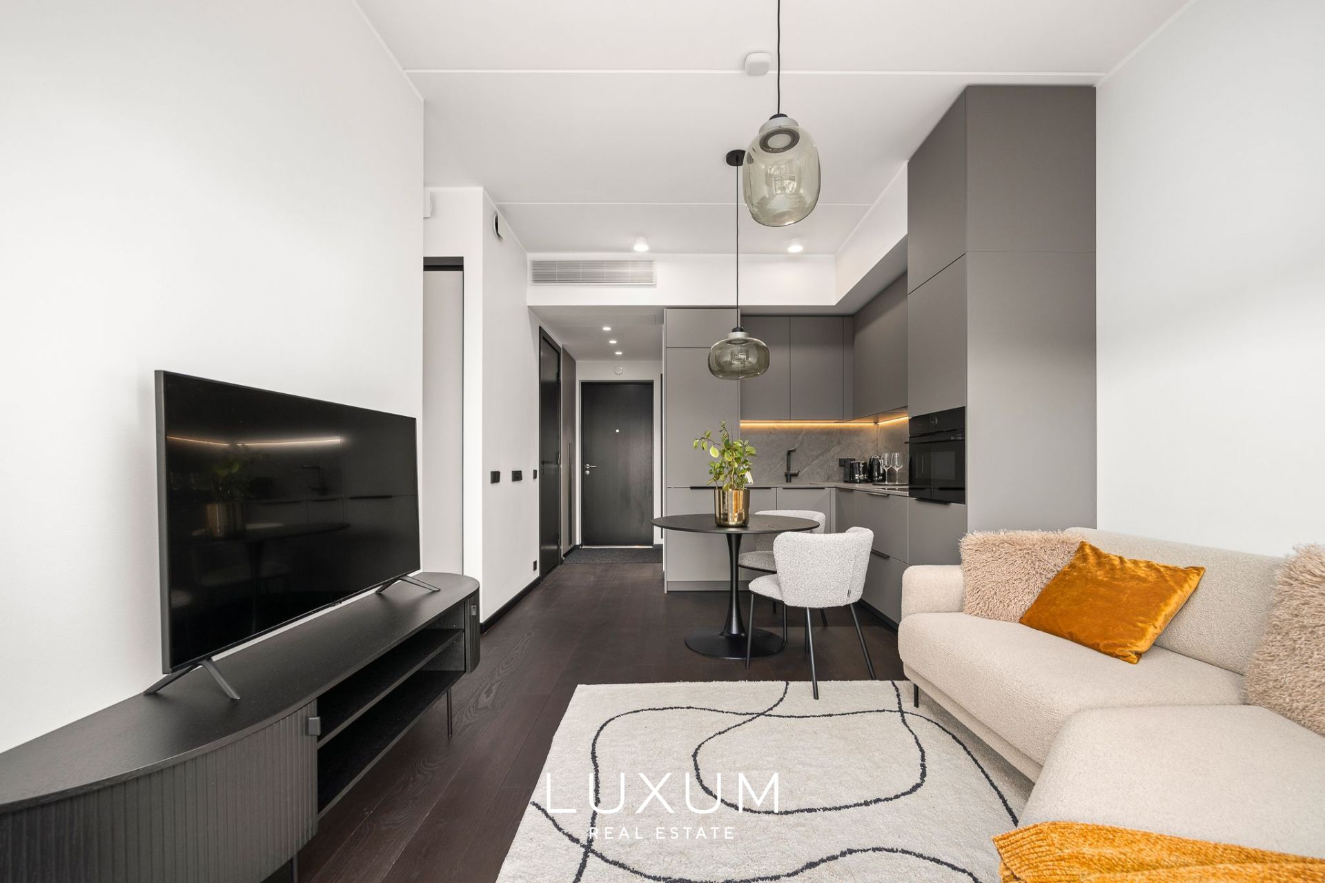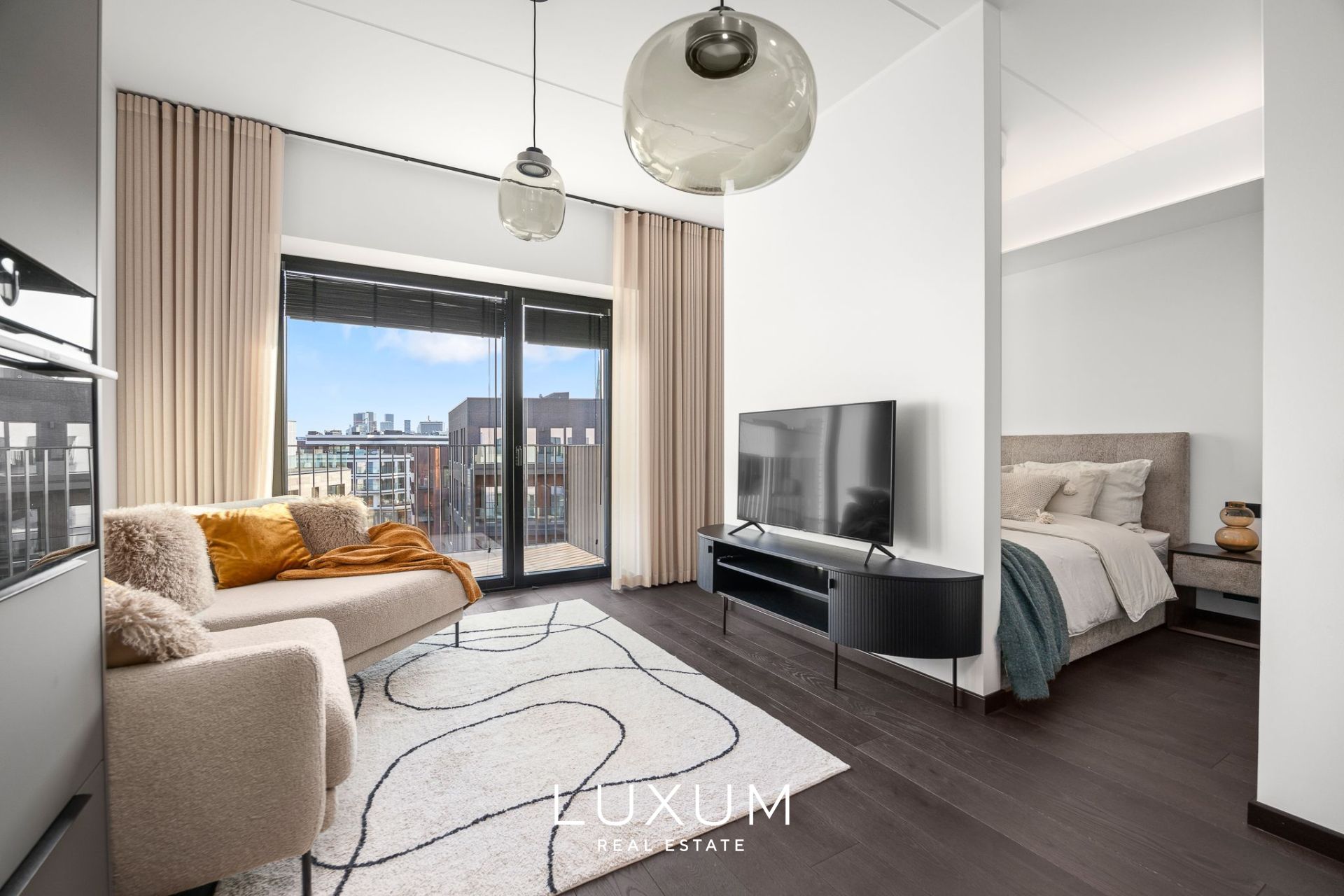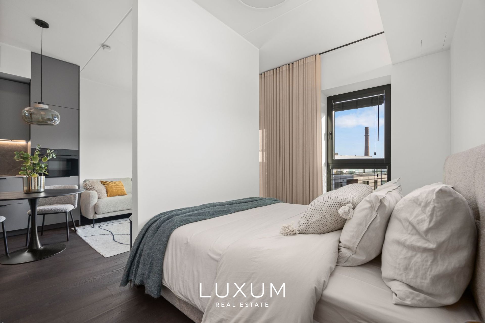 Everything here is fresh, immaculate and high-quality. The apartment is fully furnished in a timeless modern style and equipped for everyday comfort: custom-made Schmidt kitchen and wardrobes, built-in appliances, lighting, and window coverings. All furniture shown in the photos is included – just move in, effortlessly.