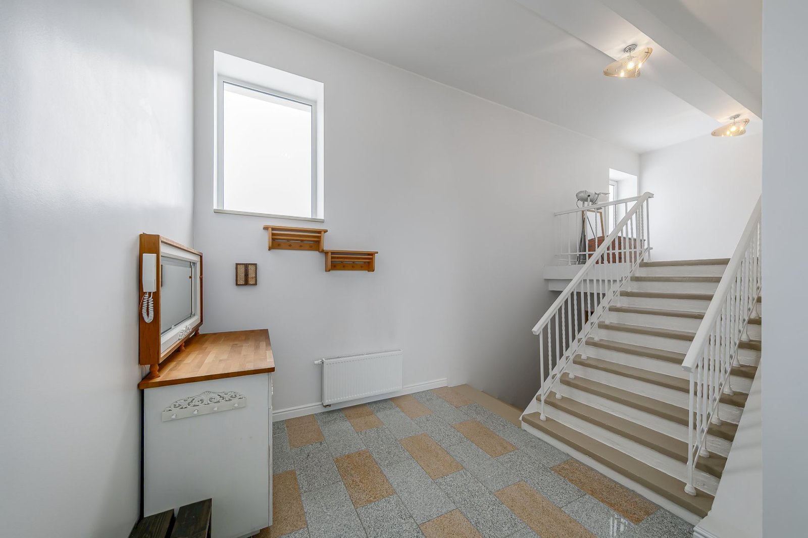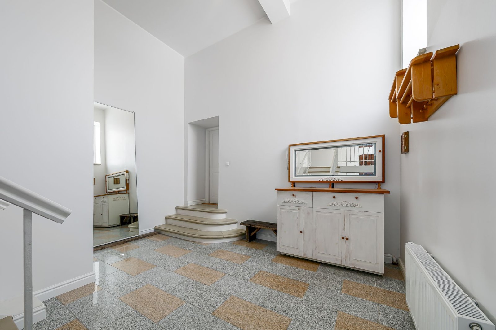 A personal gas boiler and 2 air-source heat pumps have been installed in the apartment, which keep this high-ceilinged apartment nicely warm thanks to high-quality insulation.