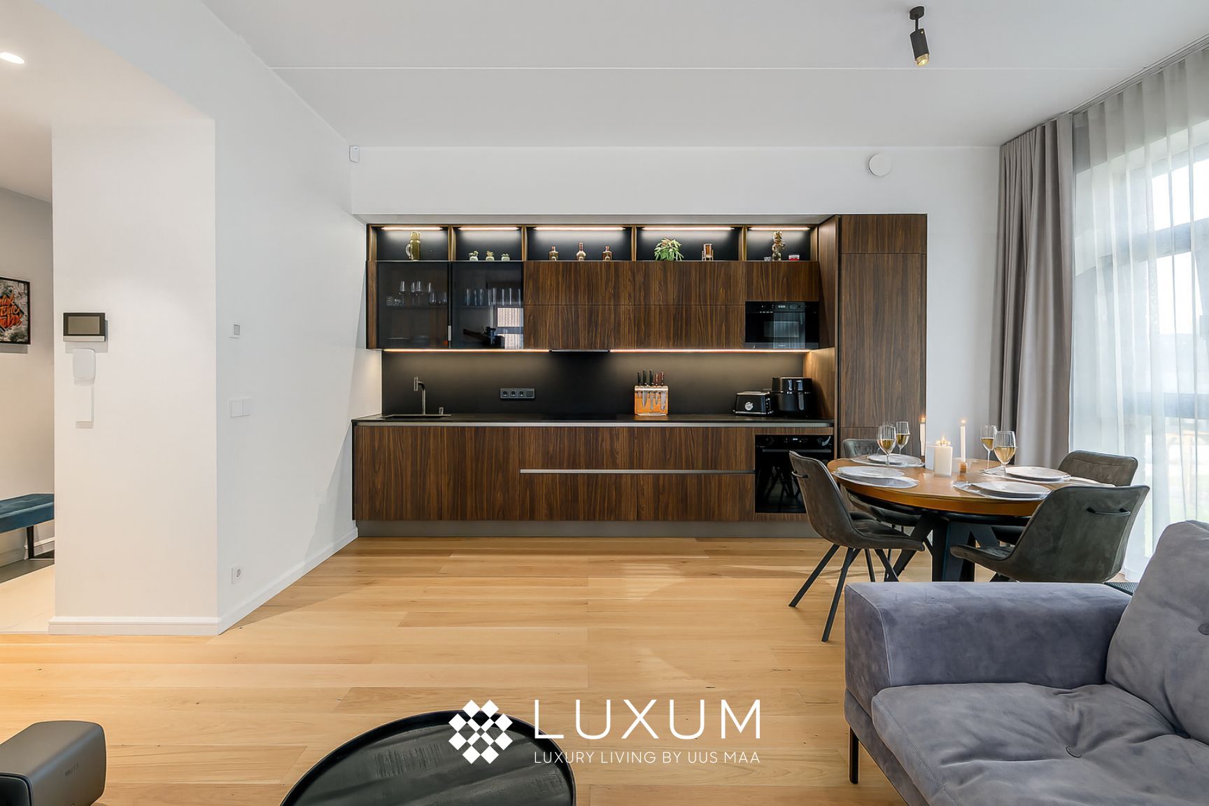 Korter on täielikult sisustatud. Kvaliteetne köögimööbel on tellitud spetsiaalsest Itaalia köögifirmast Veneta Cucine. Köögi kaunis tasapind on naturaalsest kivist ning olemas on kogu vajalik tehnikaga firmadelt (AEG, Whirlpool HOB, Samsung).